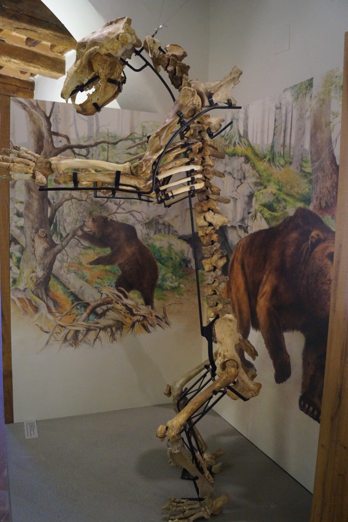 Dobrze zrobiliśmy, że dzień przed planowanym zwiedzaniem zadzwoniliśmy do muzeum, aby potwierdzić godziny otwarcia i oczywiście zapytaliśmy, czy możemy wejść do muzeum z psem. Pracownik muzeum potwierdził, że pies może zwiedzać, trzeba go jedynie pilnować przy zbliżaniu się do szkieletu niedźwiedzia. Okazało się, że nasza Floppy była obojętna wobec eksponatu.